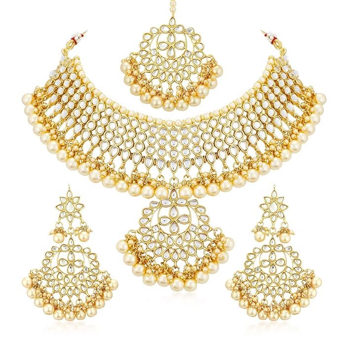 - Traditional Kundan & Pearl Gold Plated Choker Necklace Set for Women will complement any Indian attire. Women Love Jewelry as it not only enhances their beauty, but also gives them the social confidence. Make your moment memorable with this range. This jewel set features a unique one of a kind traditional embellish with antic finish. Earrings are very easy to use being lightweight and has a design which makes it very comfortable.